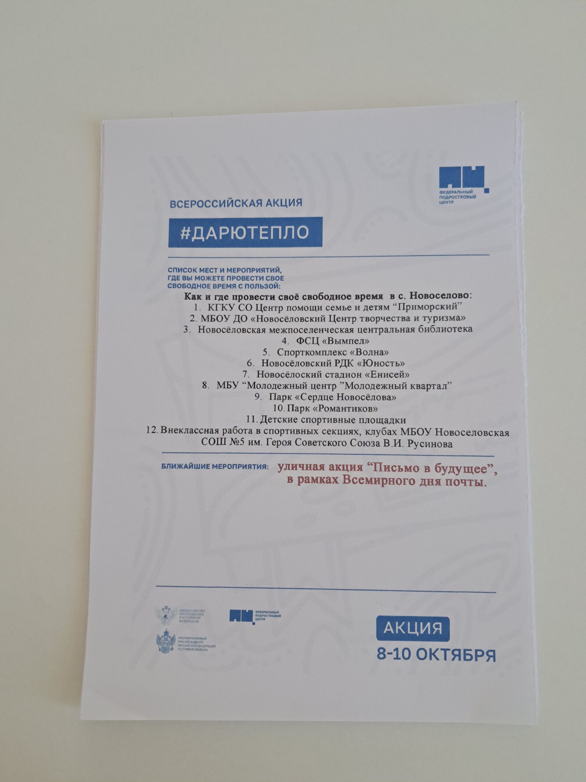 С 8 по 10 октября по всей стране проходит Всероссийская акция «Дарю тепло», приуроченная Всемирному дню почты.
